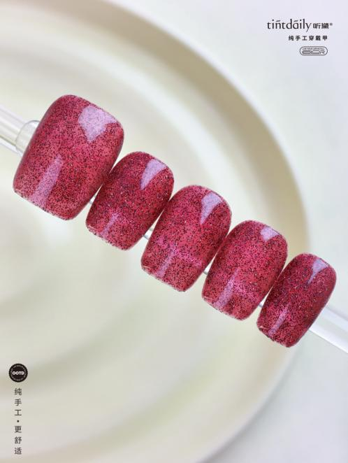 Apply an even layer of glue to natural nails and back of Glamnetic nails.