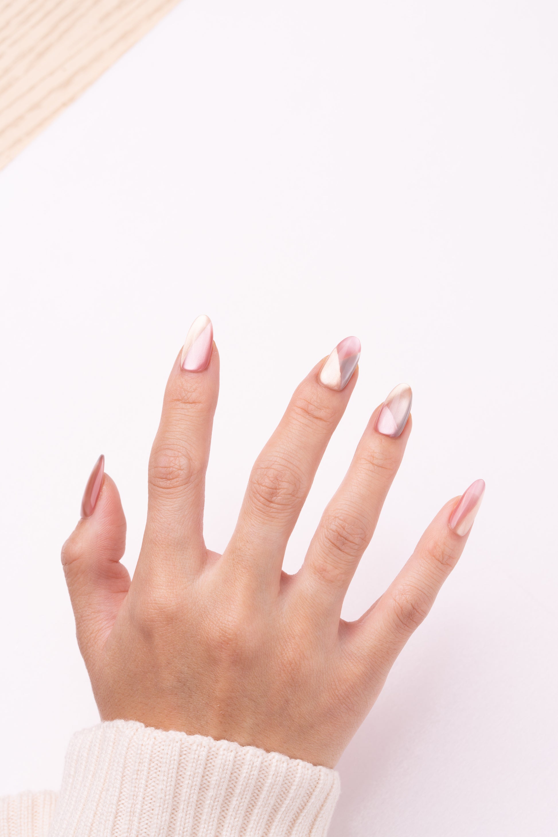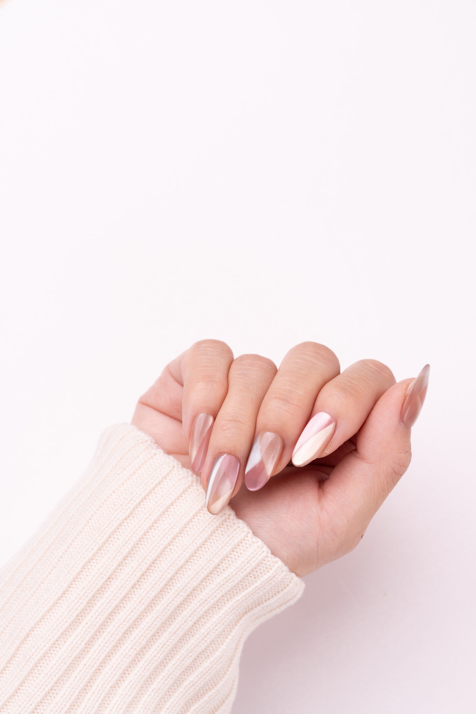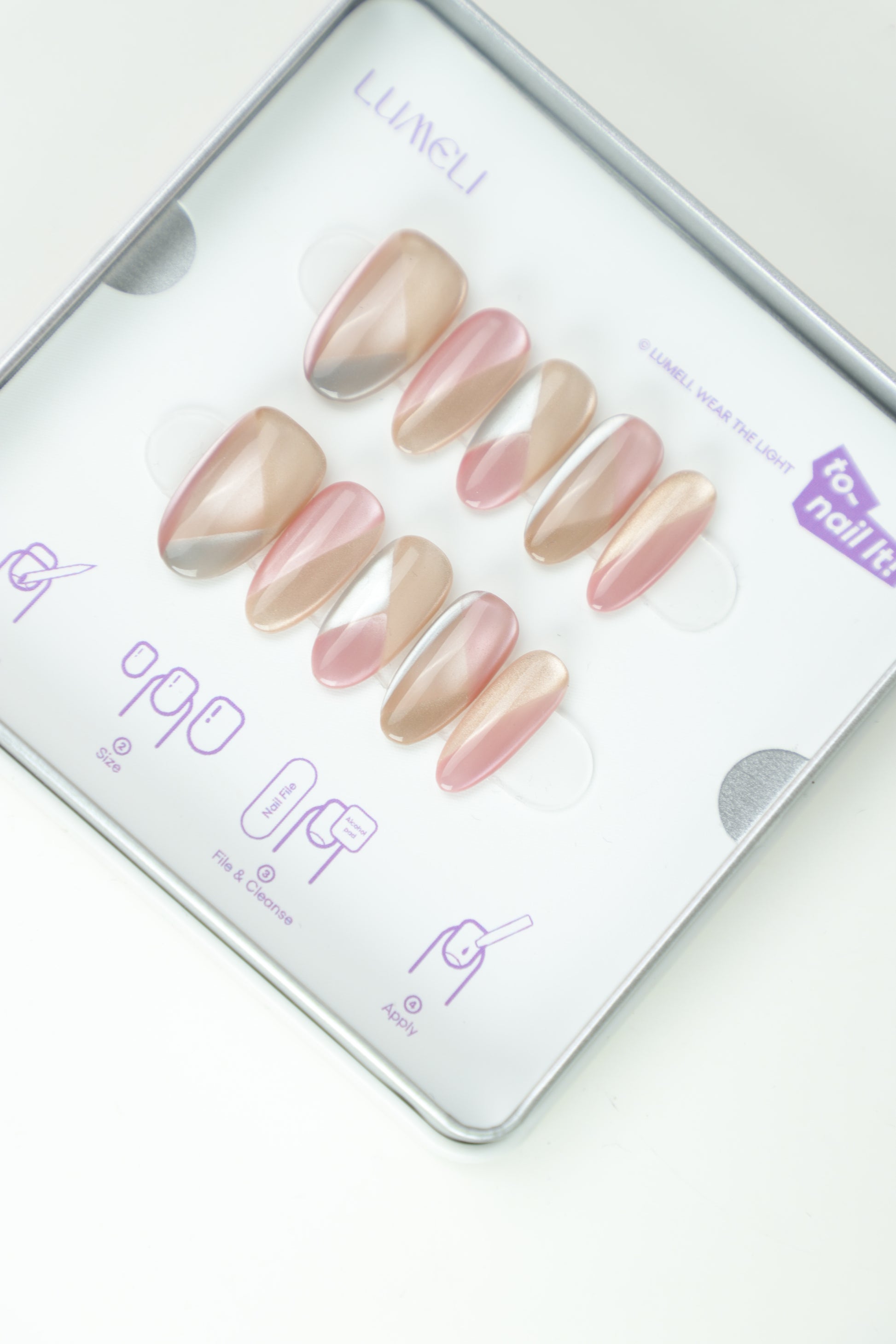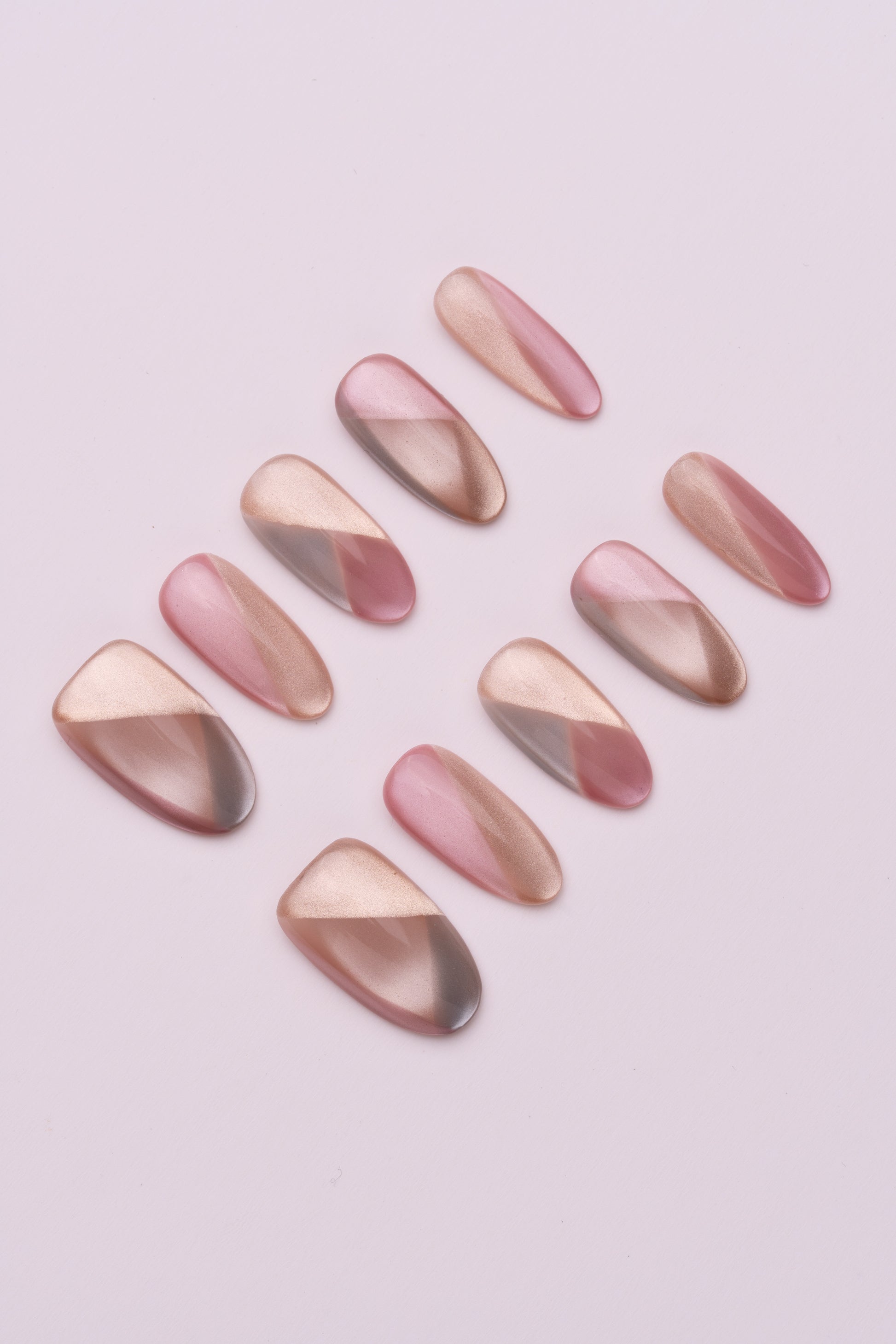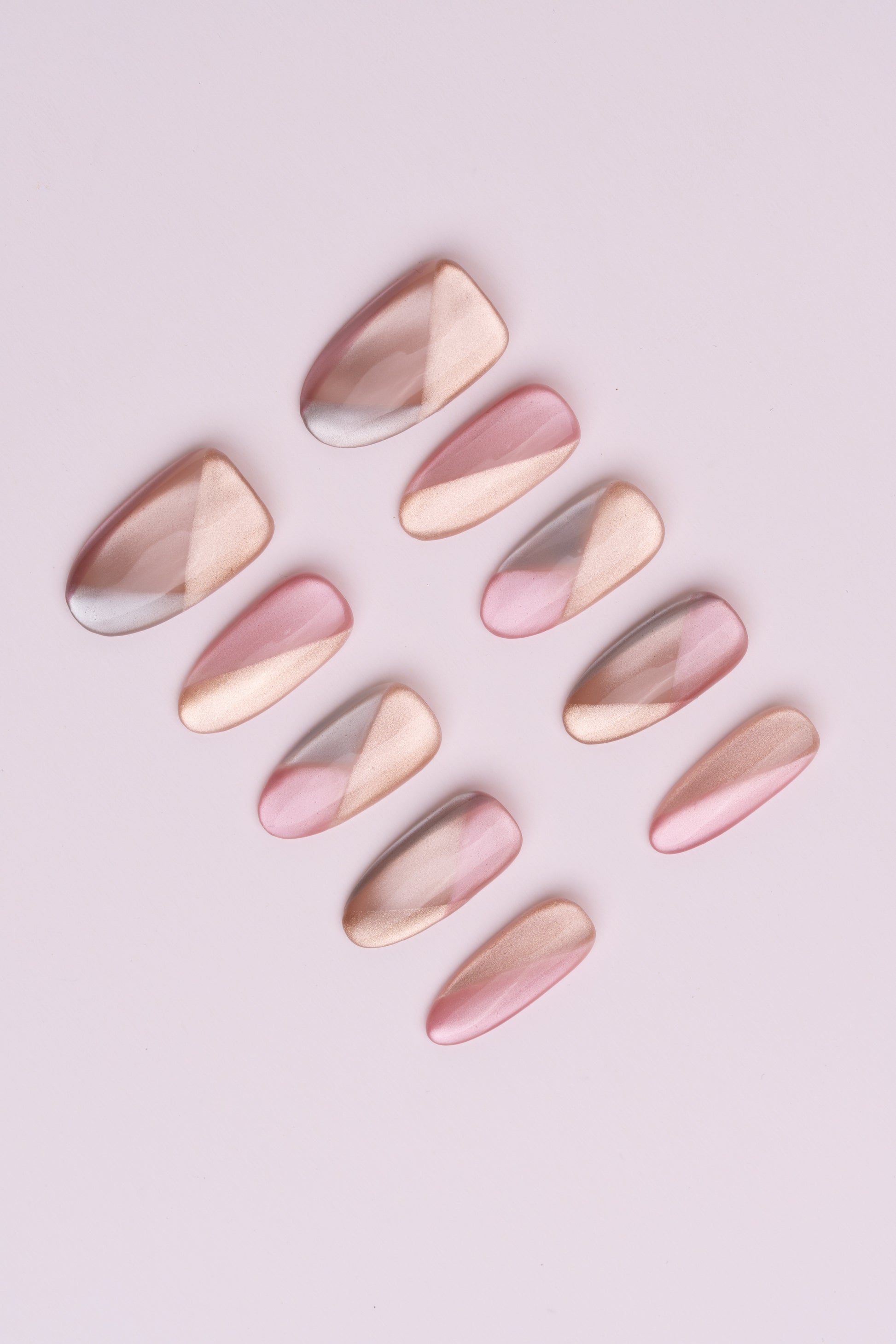 色彩灵感:源于春夏的清新治愈感,选取不挑肤色的裸粉作为主色,叠加高透感的菱格纹路,模拟出碎冰折射的光影效果,像把春日的樱花碎光都定格在指尖,温柔又显白。