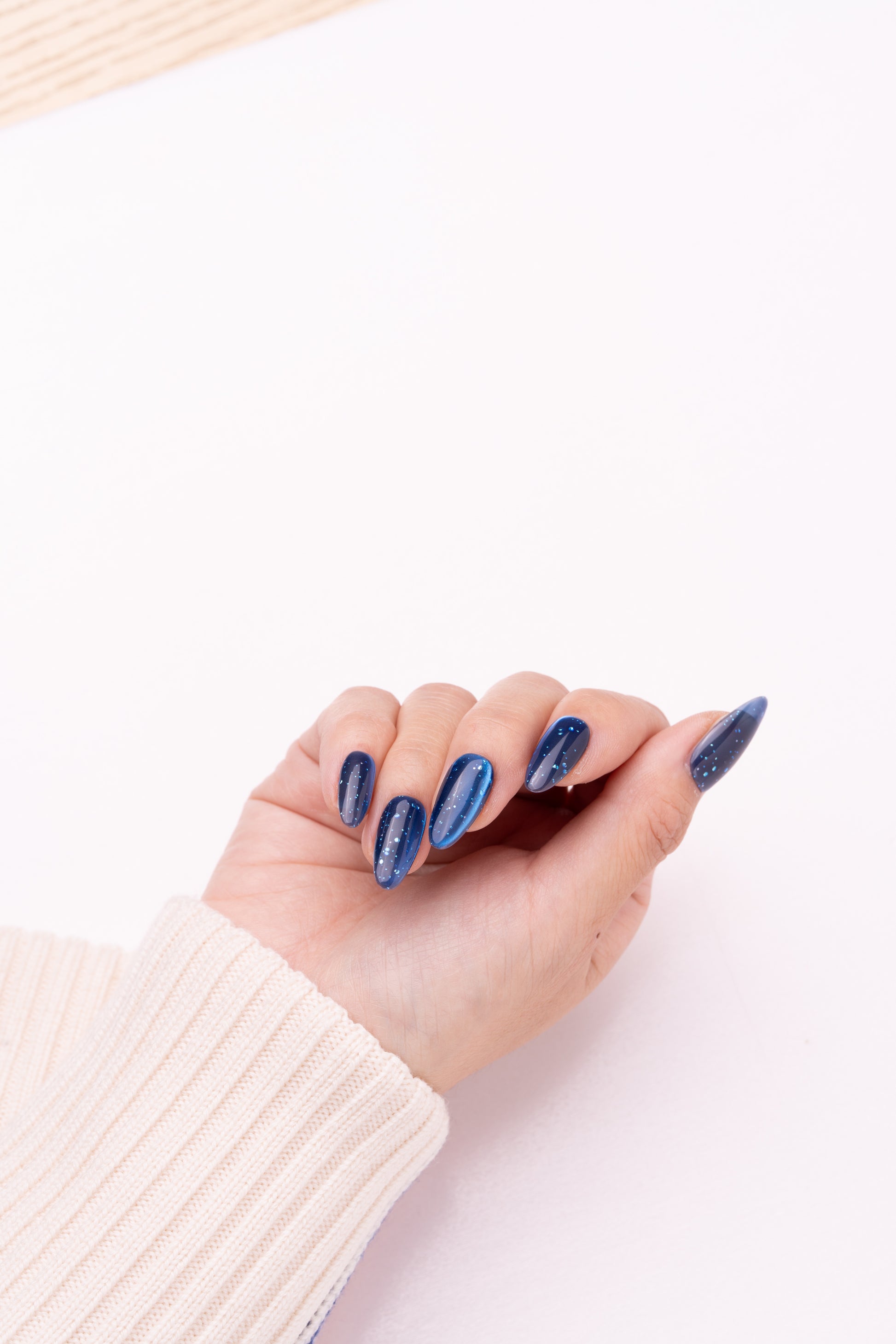 色彩靈感:源於深海與星空的碰撞,選取高透感的深海藍為主色,避開了高飽和藍的刺眼感,像深夜的海面泛著星光,冷調顯白又能適配黃皮、冷白皮等多種膚色。